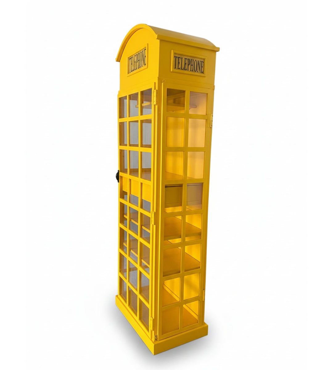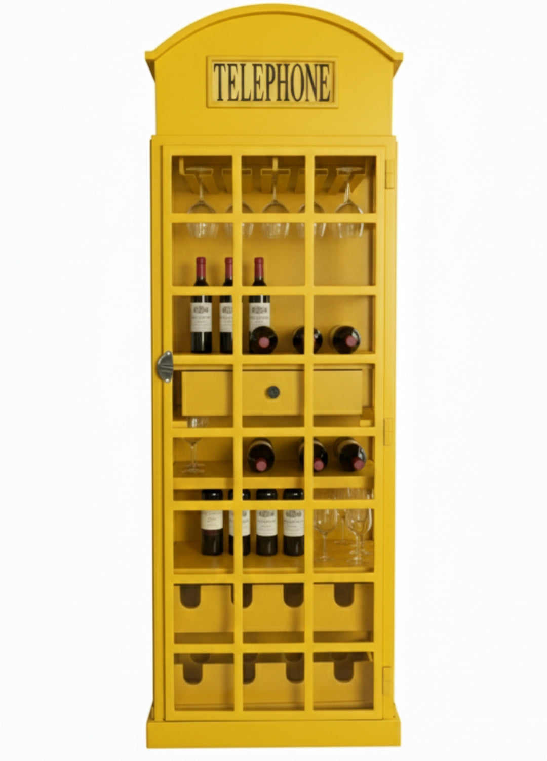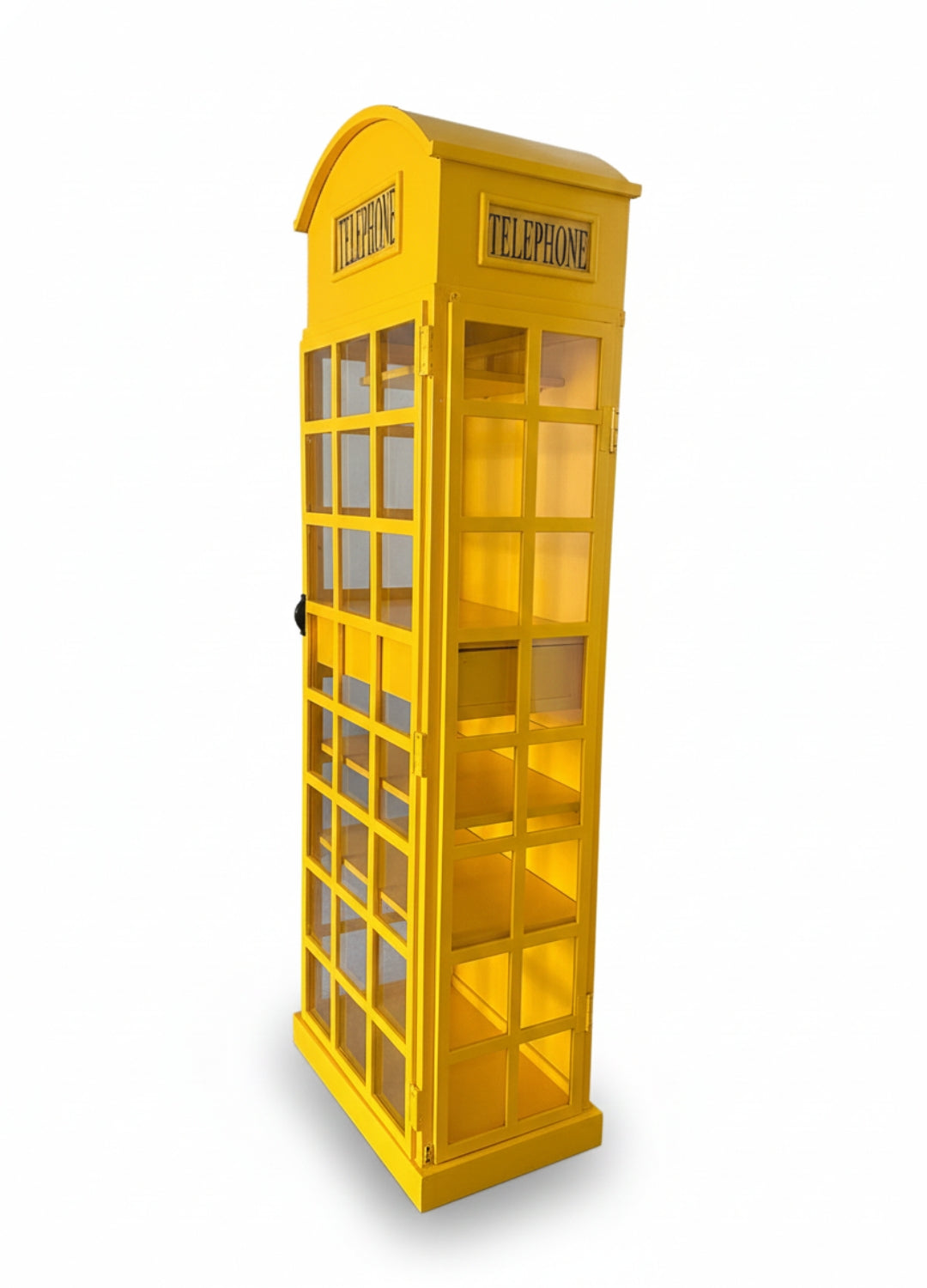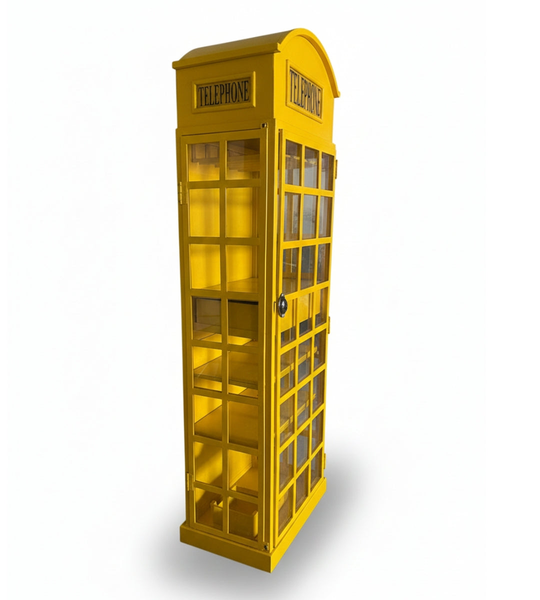Bring a piece of British heritage into your home with the Classic Telephone Booth Bar Cabinet, a stunning furniture piece inspired by the iconic yellow British telephone box. Designed to blend vintage elegance with modern functionality, this bar cabinet is the perfect addition for wine lovers, entertainers, and anyone with an eye for distinctive décor.