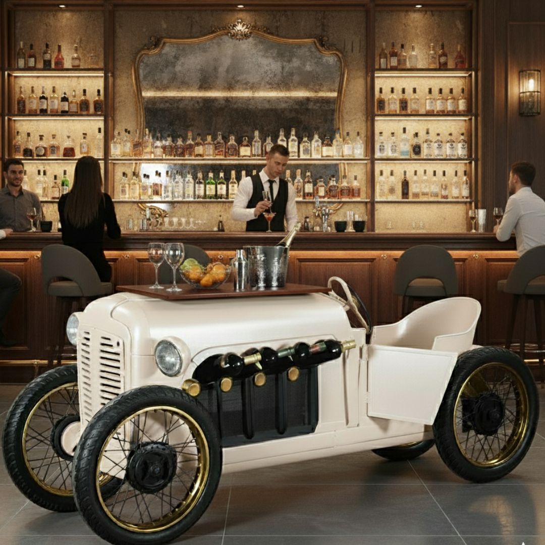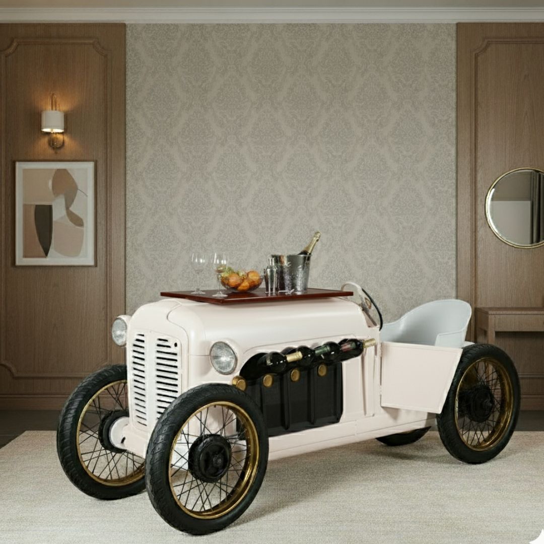 If you’re looking to bring personality and vintage flair into your space, this Vintage Car-Themed Wine Bar Table is a showstopper. Designed using the front half of a classic car, this handcrafted bar table blends industrial style with nostalgic automotive charm, making it a standout addition to home bars, cafés, restaurants, lounges, and man caves. Its bold presence, unique detailing, and functional features make it a favourite for collectors and décor enthusiasts.
