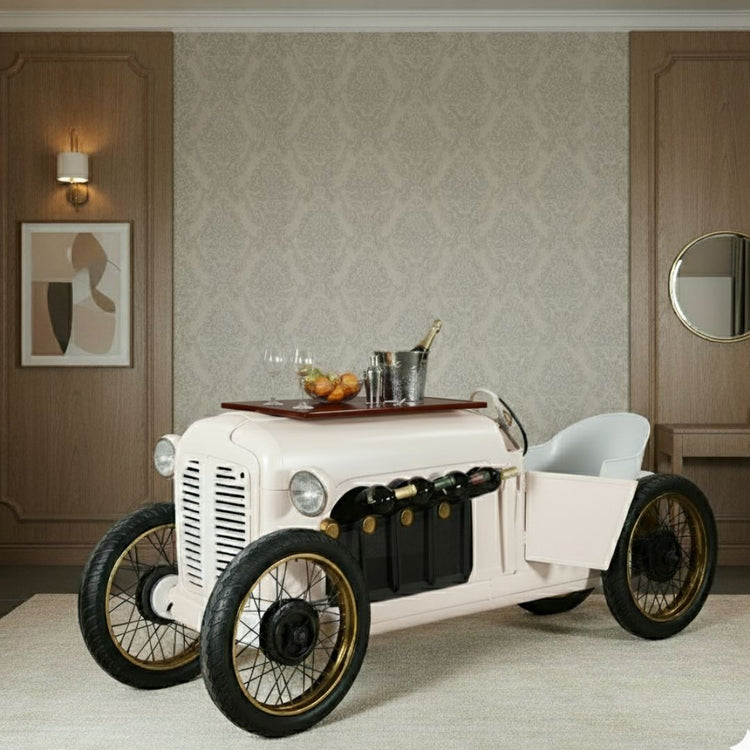 Pearl White Vintage Race Car Wine Bar Cabinet