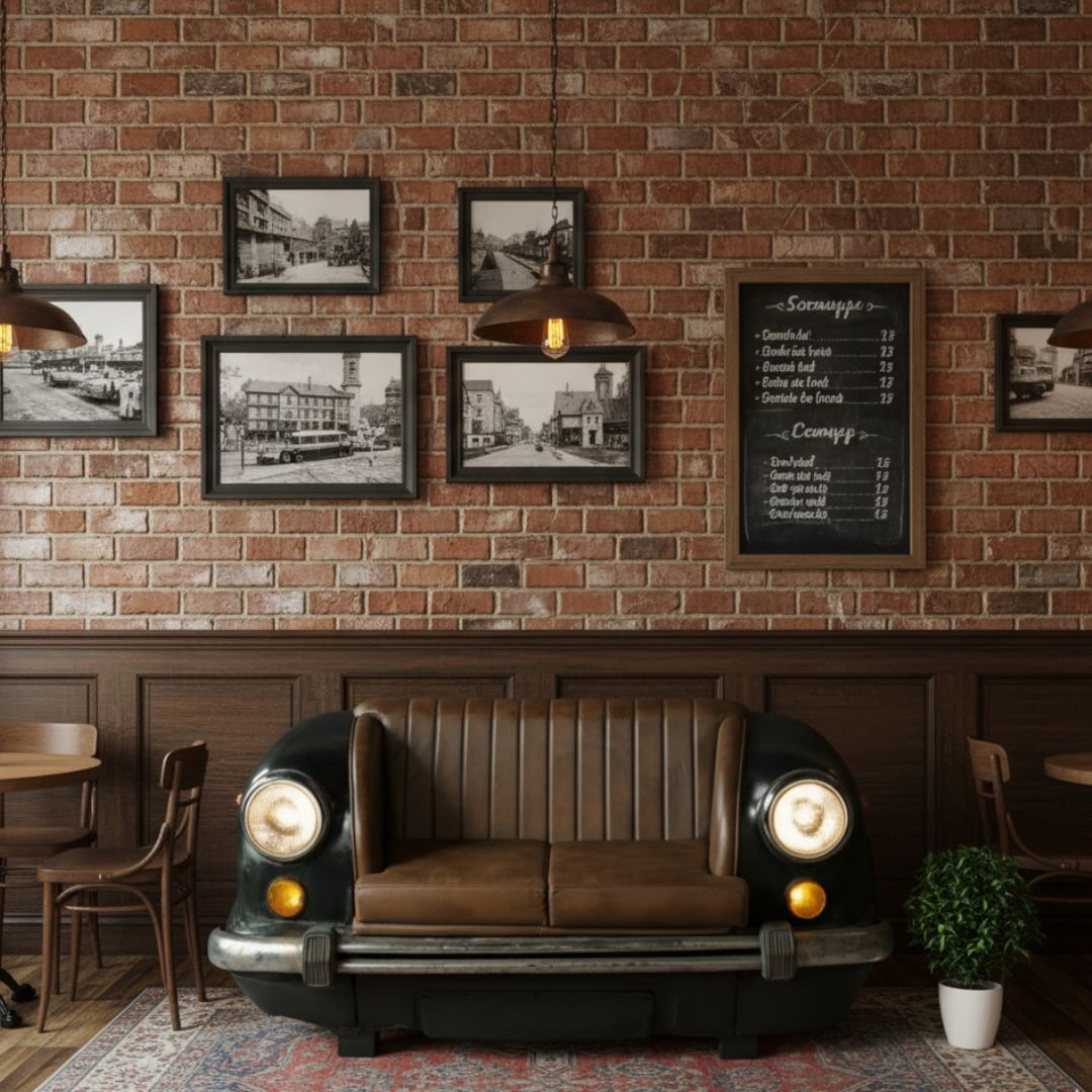 • Authentic Retro Car Front Body – A true automotive collectible repurposed into luxury seating.
