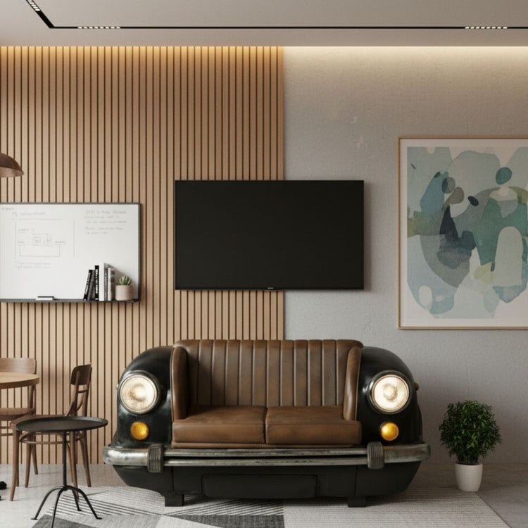 Designed to command attention, this sofa brings an industrial yet elegant charm to luxury residences, boutique hotels, designer studios, themed restaurants, and man caves. The sculpted car contours, chrome bumper details, and headlight-inspired styling create a dramatic visual impact, making it far more than furniture—it’s an art piece that celebrates automotive history.