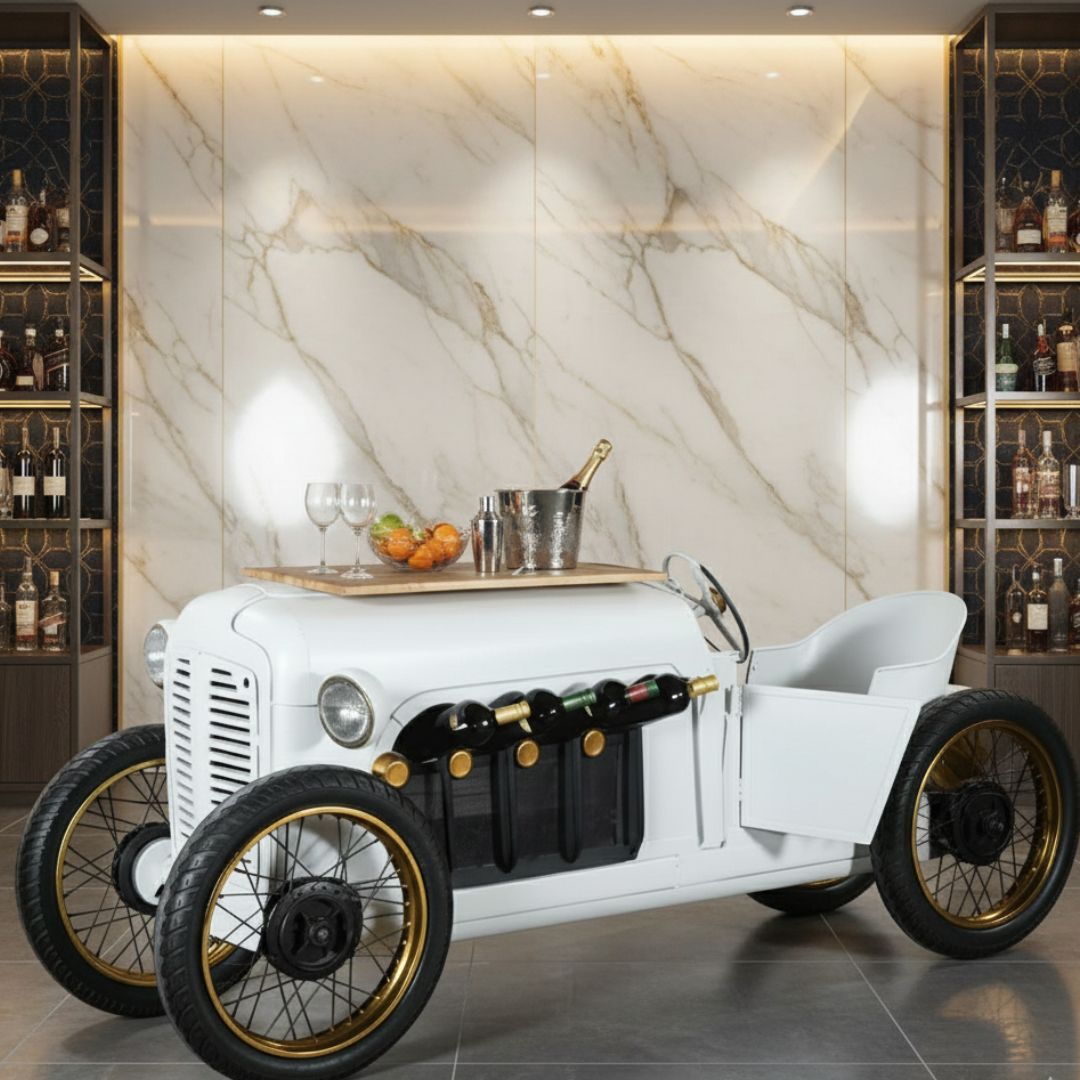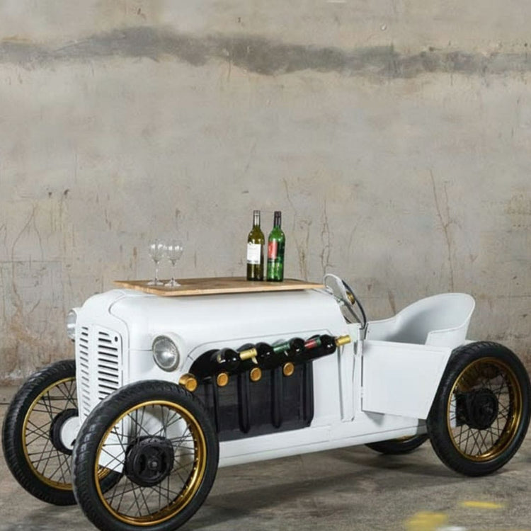 White Luxury Vintage Roadster Bar Cart & Wine Console