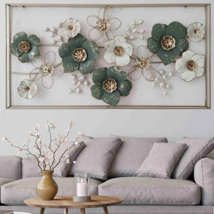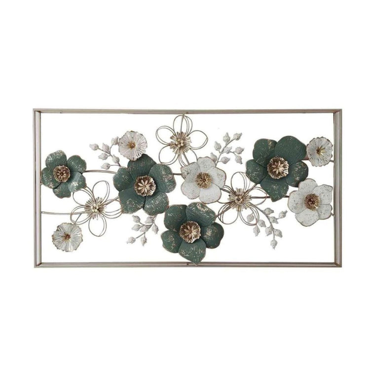 • Add a touch of elegance and whimsy to your space with the Blooming Beauty metal wall art, featuring a stunning flower-adorned frame design. This striking piece measures 50 x 25 inches and creates a captivating focal point in any room.