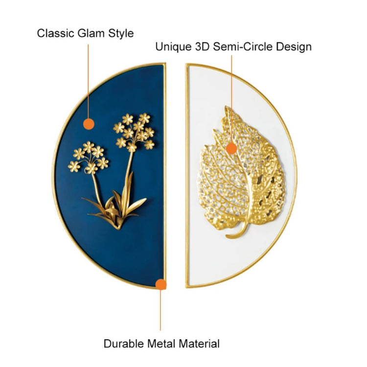 Set 2 Semi Circle Frames with Leaves Metal Wall Art (23.6 x 23.6 Inches)