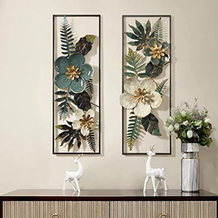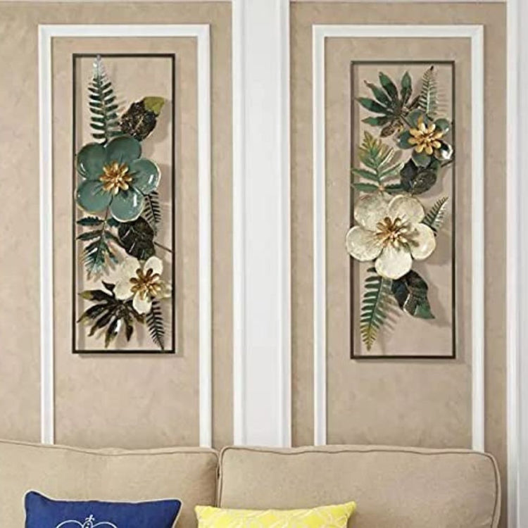 Set of 2 Blossoming Delight Flowers Frames Nature Metal Wall Art (12 x 36 Inches)
