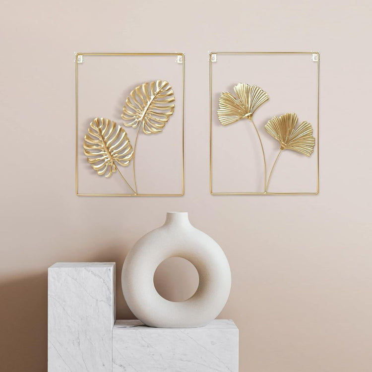 Set of 2 Golden Leaves Frames Metal Wall Art