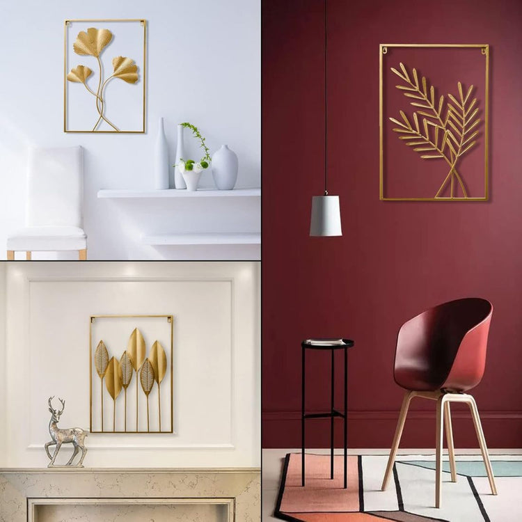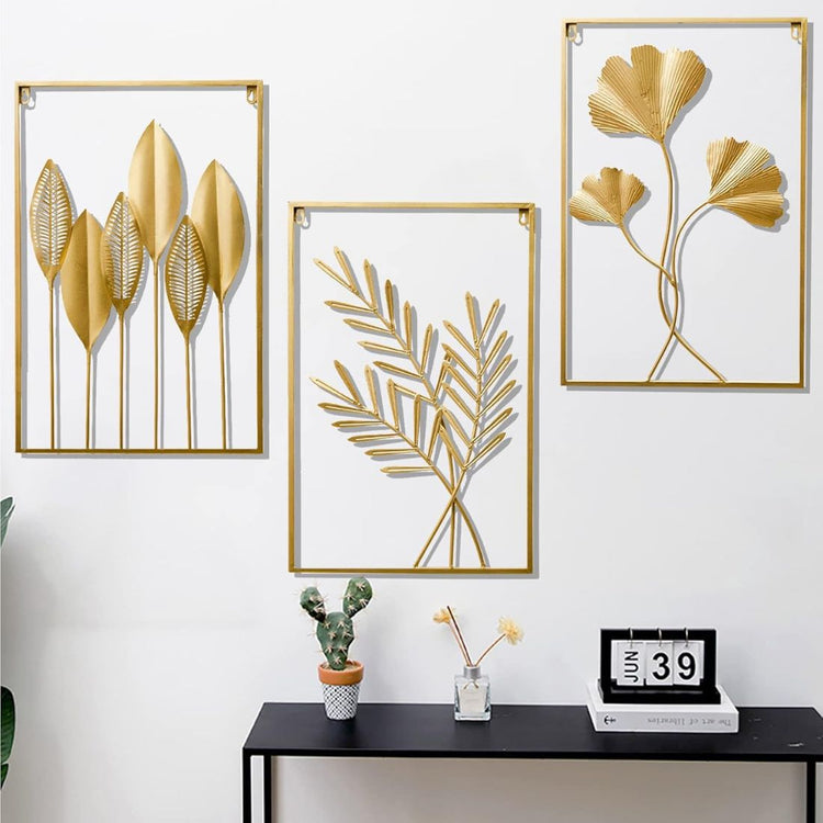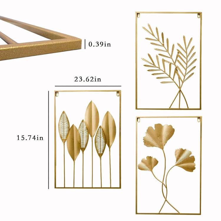 Set of 3 Frames with Golden Leaves Metal Wall Art (15.7 x 23.6 Inches)