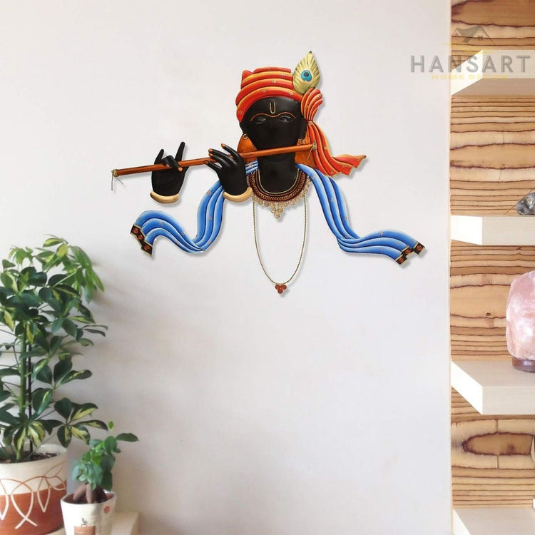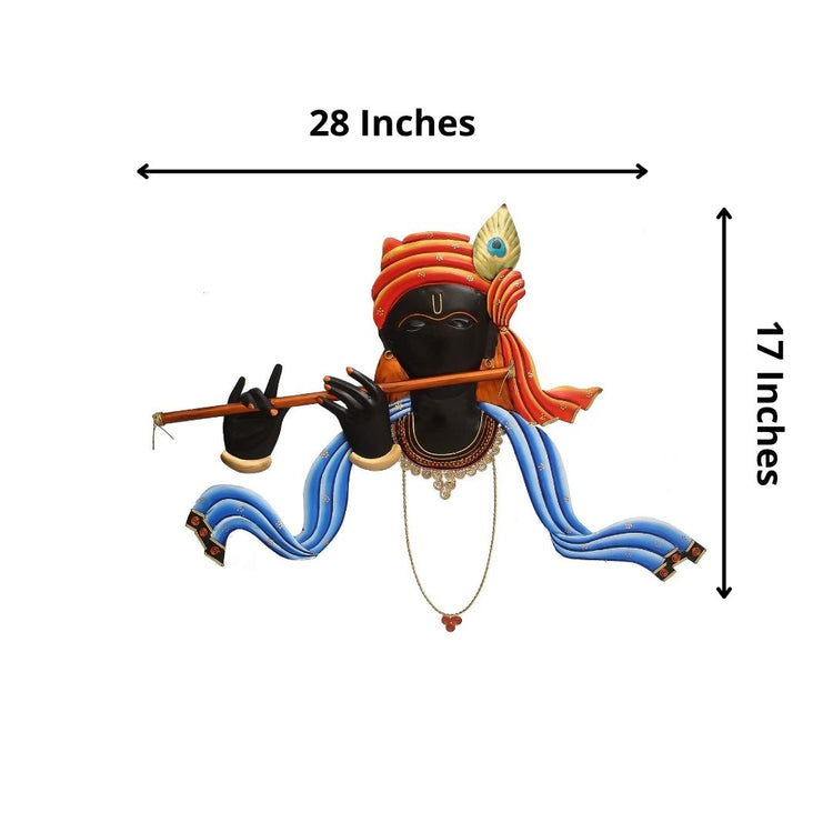 Shri Krishna with Flute Metal Wall Art (28 x 17 Inches)