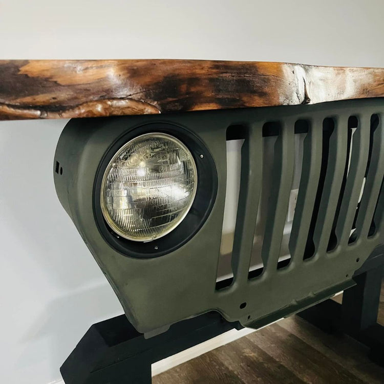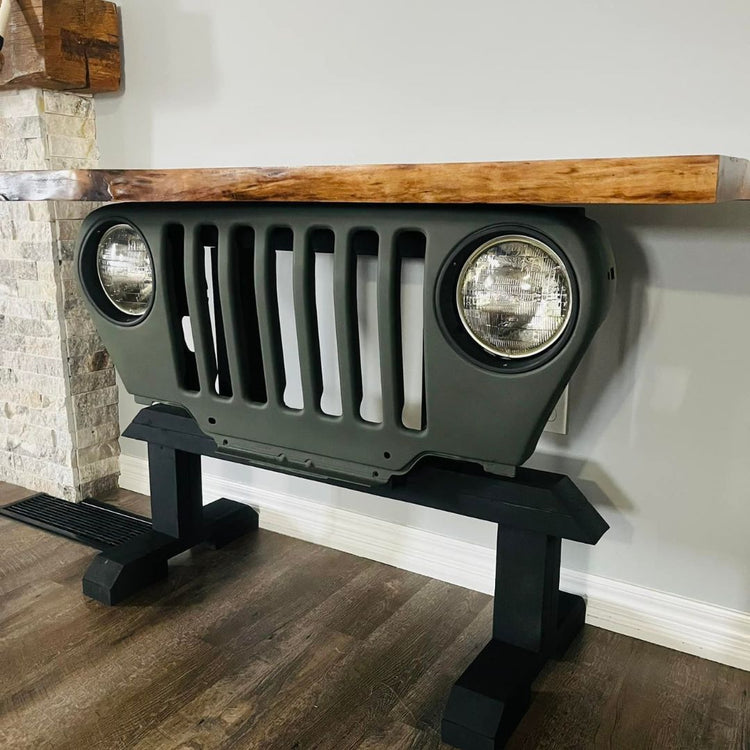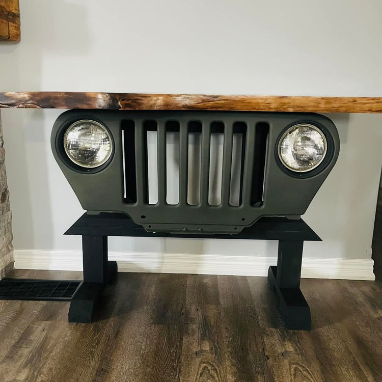 Rustic Jeep Grille Console Table with Live Edge Wooden Top