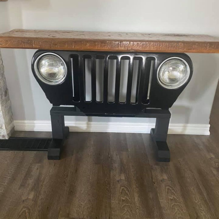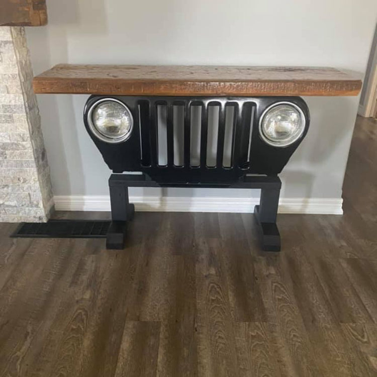 Bring adventure and rugged charm into your home with the Jeep-Inspired Console Table, a handcrafted piece designed for car enthusiasts and industrial décor lovers. Built with an authentic Jeep-style front grille, this console table instantly captures attention while adding a bold, vintage-inspired statement to your space.