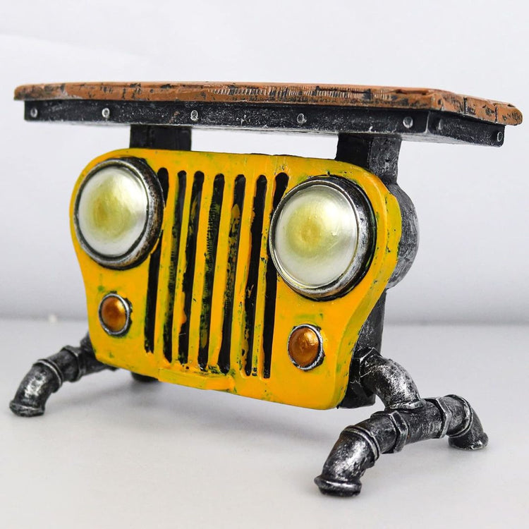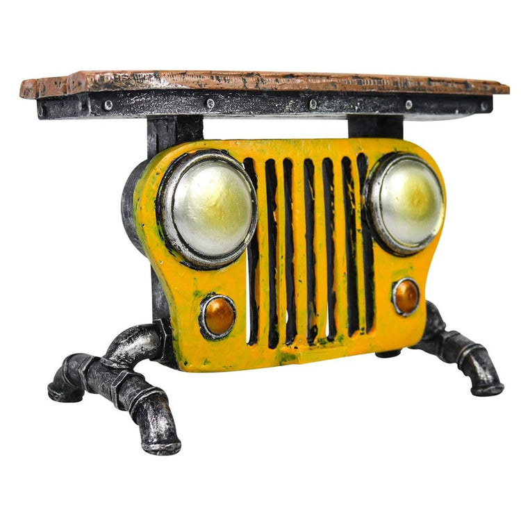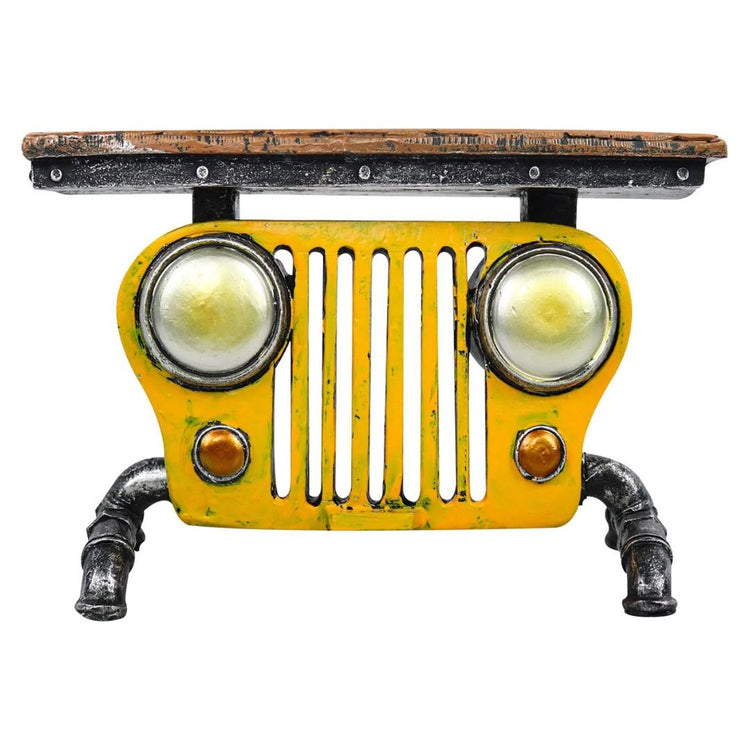 Add personality and retro-industrial flair to your interiors with the Vintage Yellow Jeep Grille Mini Table—a handcrafted furniture piece that captures the spirit of adventure and nostalgia. Designed with a distressed yellow Jeep front grille, this mini table is topped with a rustic wooden surface and supported by industrial-style pipe legs, blending rugged automotive heritage with steampunk-inspired charm.