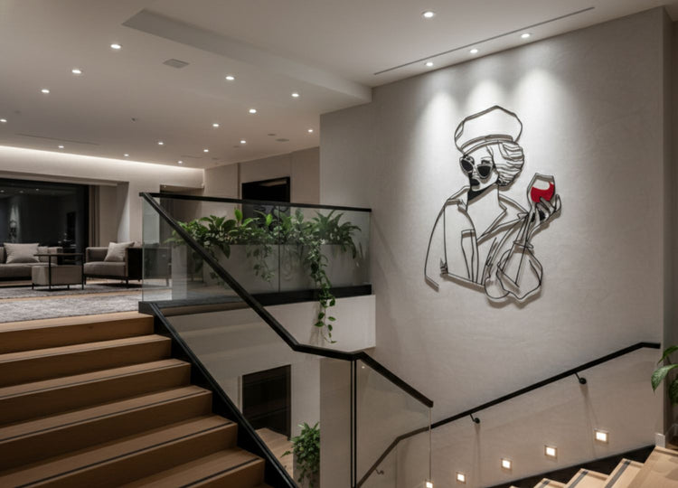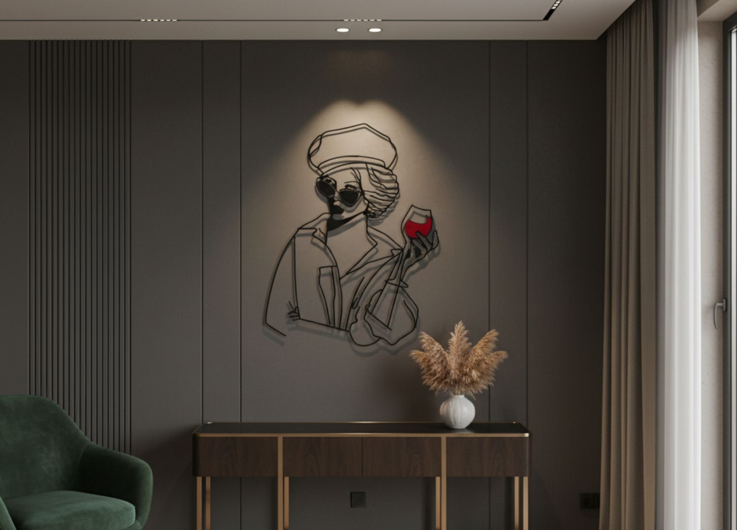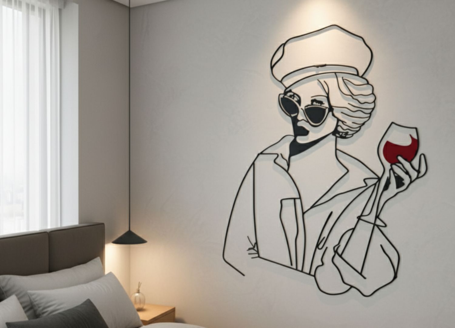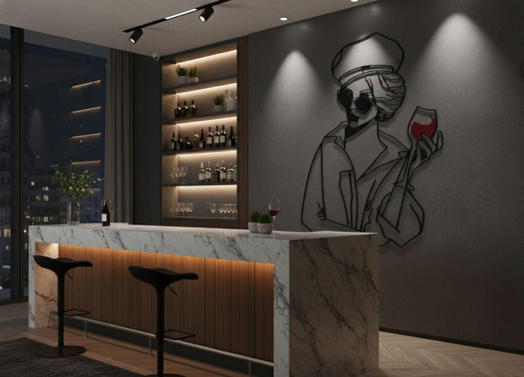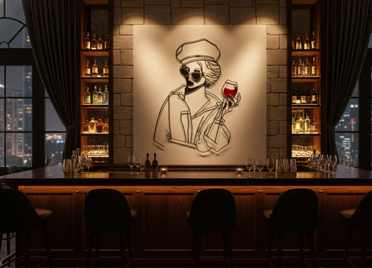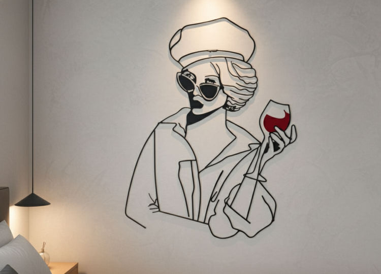 Stylish Woman Drinking Wine Metal Wall Art for Bar