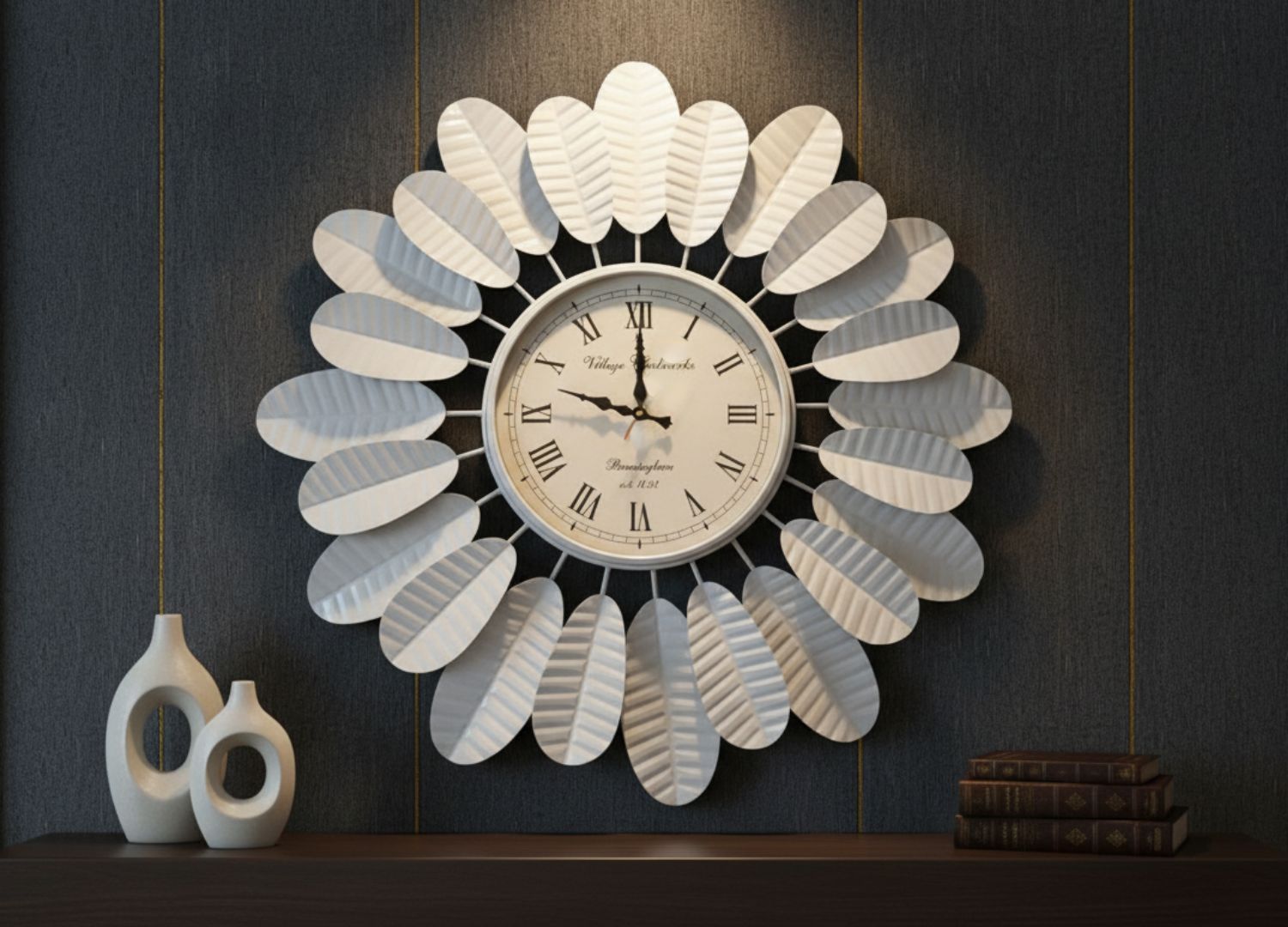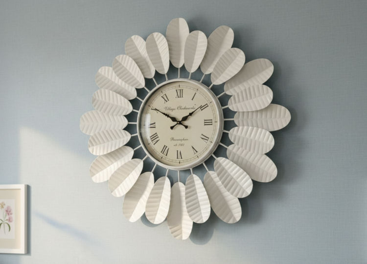 • Bring timeless beauty and artistic charm to your home with this exquisite White Floral Metal Wall Clock, designed to function as both a stylish décor piece and a reliable timekeeper.