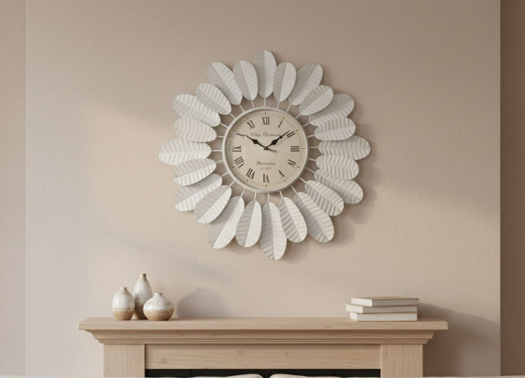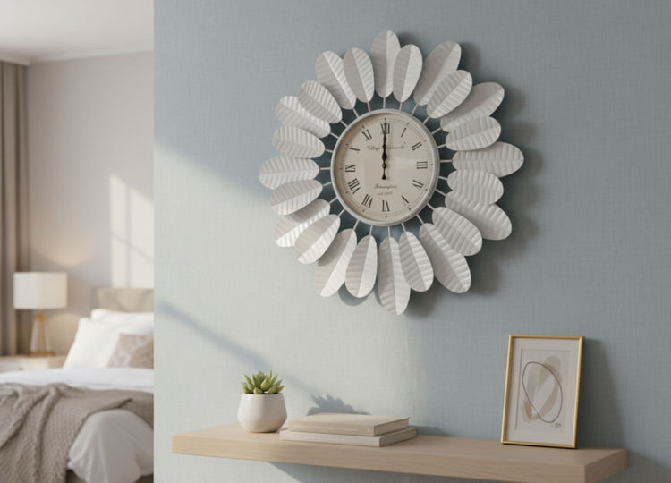 Inspired by the soft curves of blooming petals, the clock features a double-layer floral design that forms a graceful 3D sunburst effect on your wall. Its crisp matte-white finish blends effortlessly with a wide range of décor styles—whether you love Modern Farmhouse, Minimalist, Shabby Chic, Boho, or Scandinavian elegance.